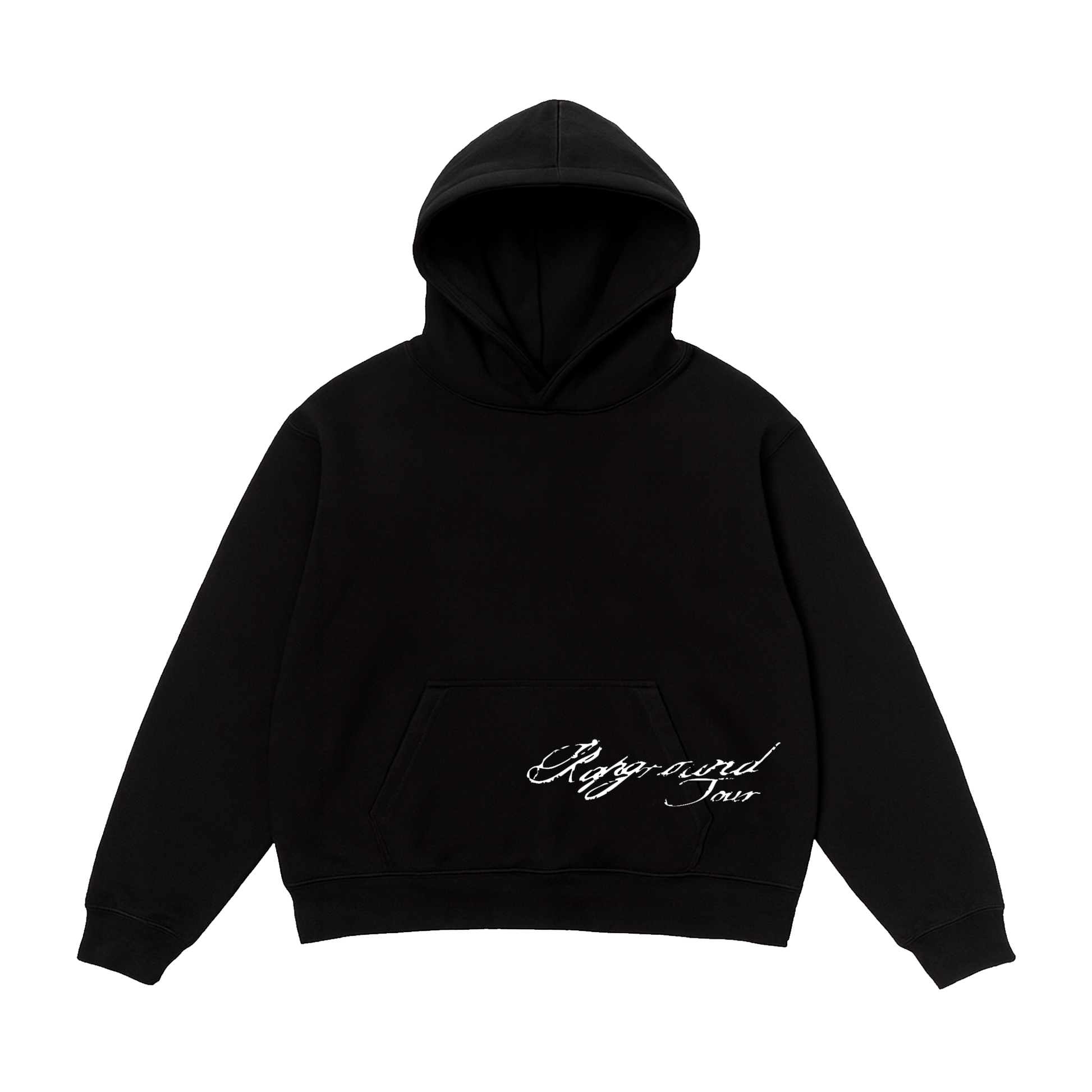 Oficjalna bluza hoodie trasy RapGround Tour 2026. Dostępna w rozmiarach S, M, L oraz XL. Krój boxy. Możliwe do wyboru dwa warianty, drugi dostępny osobno na stronie głównej (różnią się plecami oraz przodem).